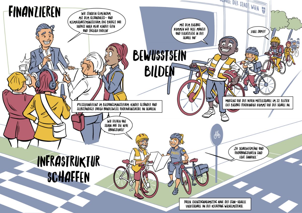 Jedes Kind sollte selbständig mobil sein können: Die im Kindesalter praktizierte Mobilität wirkt ins Erwachsenenalter und hat einen großen Effekt auf Gesundheit und Klima. Um ab 10 Jahren allein zu radeln, müssen Kinder die freiwillige Radfahrprüfung absolvieren. Diese Möglichkeit wird lokal sehr unterschiedlich genutzt und unterstützt. Sicheres eigenständiges Radfahren ist somit nicht selbstverständlich für alle Kinder. Die zugrunde liegenden Hürden werden in diesem Projekt identifiziert und gemeinsam mit Akteur:innen aus dem Schulumfeld, Entscheidungsträger:innen und Fachexpert:innen Handlungsempfehlungen herausgearbeitet. Damit soll rechtzeitig der Aufbau von Kompetenzen und die Schaffung von Rahmenbedingungen unterstützt werden, die die Erwachsenen von morgen optimal auf das Fahrradfahren im Alltag vorbereiten und damit die Transformation zu einer nachhaltigen Mobilität fördern. Was müssen wir jetzt tun, damit in Zukunft möglichst viele Menschen ab jungen Jahren befähigt sind mit dem Fahrrad im Alltag zu fahren?
